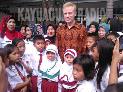 Duta Besar Uni Eropa untuk Indonesia dan Brunei Darussalam, Vincent Guerrend mengunjungi beberapa sekolah di Kabupaten Ogan Komering Ilir Sumatera Selatan, Rabu (16/12). Kunjungannya ini untuk melihat realisasi bantuan negara donor pada sektor pendidikan.