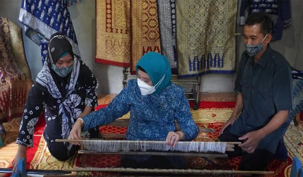 “Jadi pengembangan produk lokal ini agar mampu bangkit dan pulih dari pandemi” ujar Ketua TP PKK OKI, Hj. Lindasari Iskandar saat mengunjungi kelompok pengrajin tenun songket “Seroja” Desa Pematang Buluran Kecamatan Sirah Pulau padang. Rabu, (22/9).