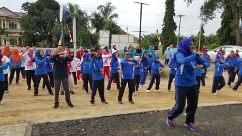 Kepala Dinas Kesehatan OKI, H M Lubis SKM., M.Kes, didampingi Sekretaris Dinkes OKI, Iwan Setiawan, SKM., M.Kes mengatakan ” Ya, Germas ini dilakukan secara serentak di 31 puskesmas di OKI. Tema tersebut diatas sejalan dengan program Indonesia sehat melalui pendekatan keluarga, dimana keluarga menjadi awal untuk mendorong masyarakat yang mandiri untuk hidup sehat “.