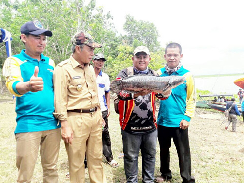 hobinya memancing bersama warga di Danau Air Itam Kecamatan Pedamaran Kabupaten OKI, Selasa, (7/11)