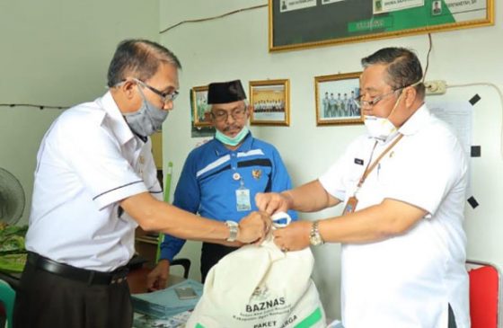 Badan Amil Zakat Nasional (Baznas) Kabupaten Ogan Komering Ilir membagikan ratusan paket sembako kepada guru ngaji, Petugas Penghubung Urusan Keagamaan Daerah (P2UKD) hingga pengurus kantin Pondok Pesantren se Kabupaten OKI, Kamis, (23/4).