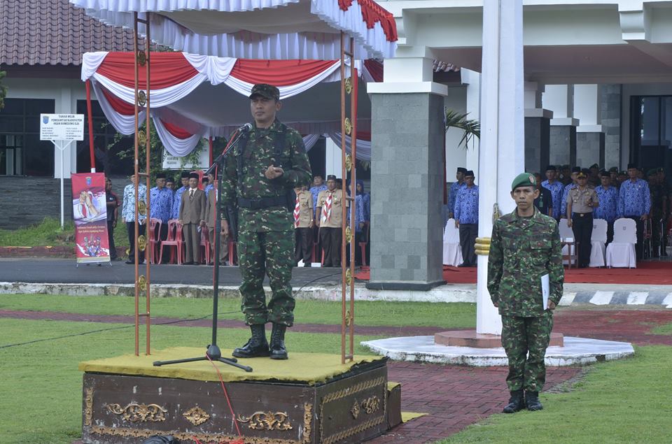 Dandim 0402 OKI Letkol Inf Arif Suryandaru sebagai Irup (Inspektur Upacara), membacakan amanat Presiden R.I Joko Widodo, mengatakan Konstitusi mengamanatkan bahwa tiap-tiap warga negara berhak dan wajib ikut serta dalam usaha pertahanan dan keamanan negara. Amanat Konstitusi ini tentu saja tidak lahir dalam ruang kosong, namun berangkat dari sejarah perjuangan bangsa. Republik Indonesia bisa berdiri tegak sebagai negara bangsa yang berdaulat tidak lepas dari perjuangan dari seluruh kekuatan rakyat, mulai dari petani, pedagang, kecil, nelayan, dan elemen rakyat lainnya untuk membela tanahh air.