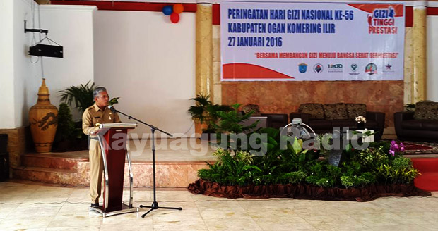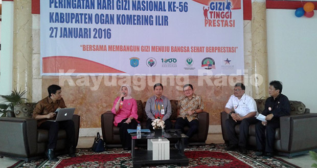 hari gizi nasional 2016Dalam rangka peringatan Hari Gizi Nasional, Dinas Kesehatan Ogan Komering Ilir mengadakan kegiatan Kampanye Gizi Dengan tema “Sanitasi Cemerlang Prestasi Gemilang” Gizi Tinggi Cegah Stanting. Dan Talk show “Bersama membangun gizi menuju bangsa sehat berprestasi”, Pelantikan Duta Gizi Kabupaten OKI bertempat di Pendopoan Kabupatenan, Rabu (27/01/16).