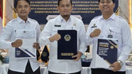 Kayuagung – Prestasi membanggakan kembali diraih jajaran Lembaga Pemasyarakatan (Lapas) Kelas IIB Kayuagung. Tiga orang petugas, yakni Muhammad Yusuf Pamungkas yang juga menjabat sebagai Kepala KPLP, bersama dua anggota, Muhammad Ardiansyah dan Gusman Ferdiansyah, berhasil meraih Anugraha Wira Wibawa Dharmesti Pratama—sebuah penghargaan atas dedikasi, loyalitas, dan kinerja luar biasa dalam melaksanakan tugas serta pengabdian di lingkungan Pemasyarakatan. (5/11/2025).